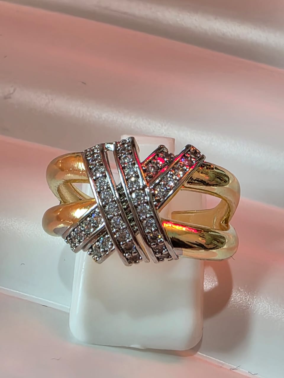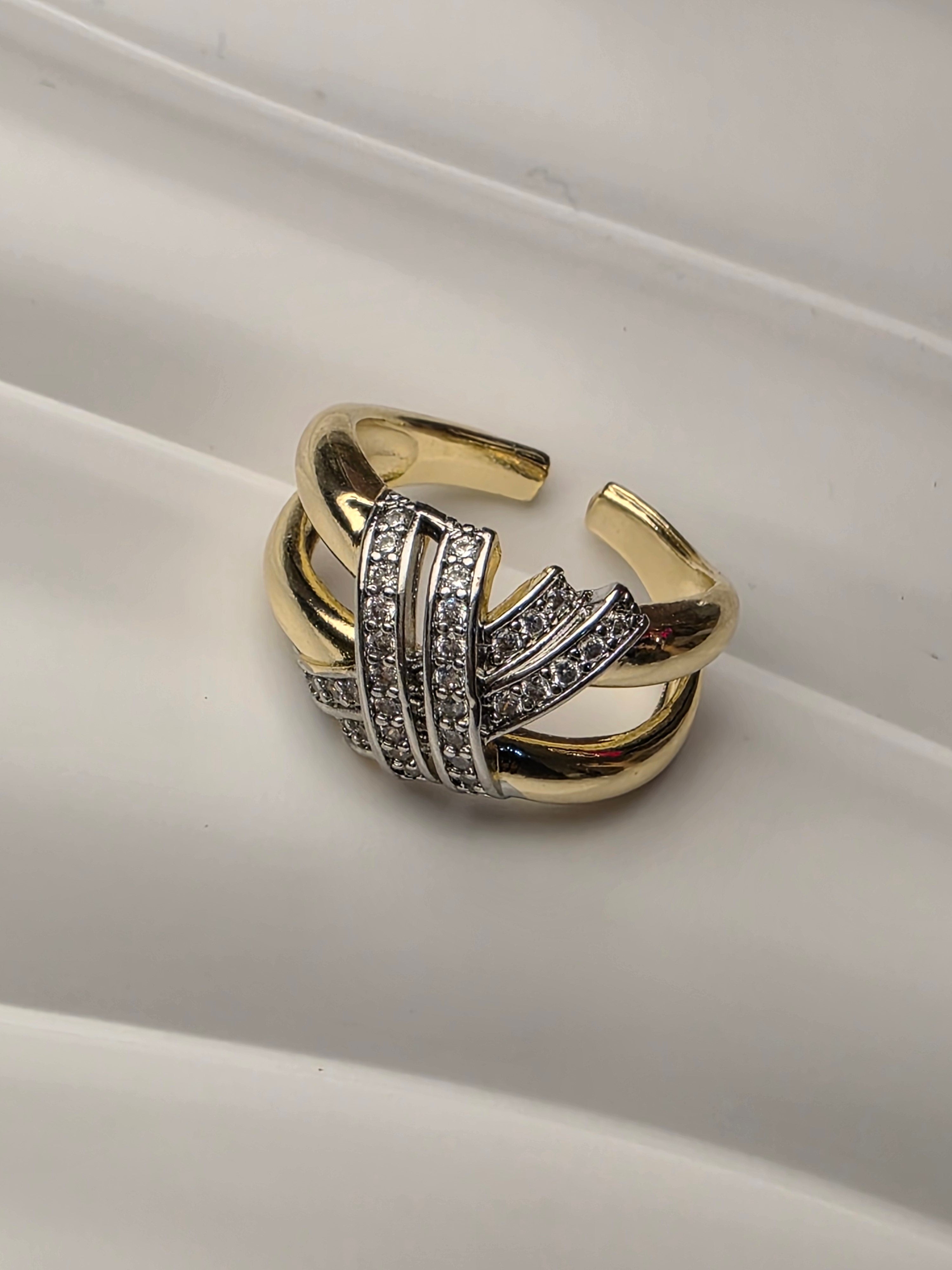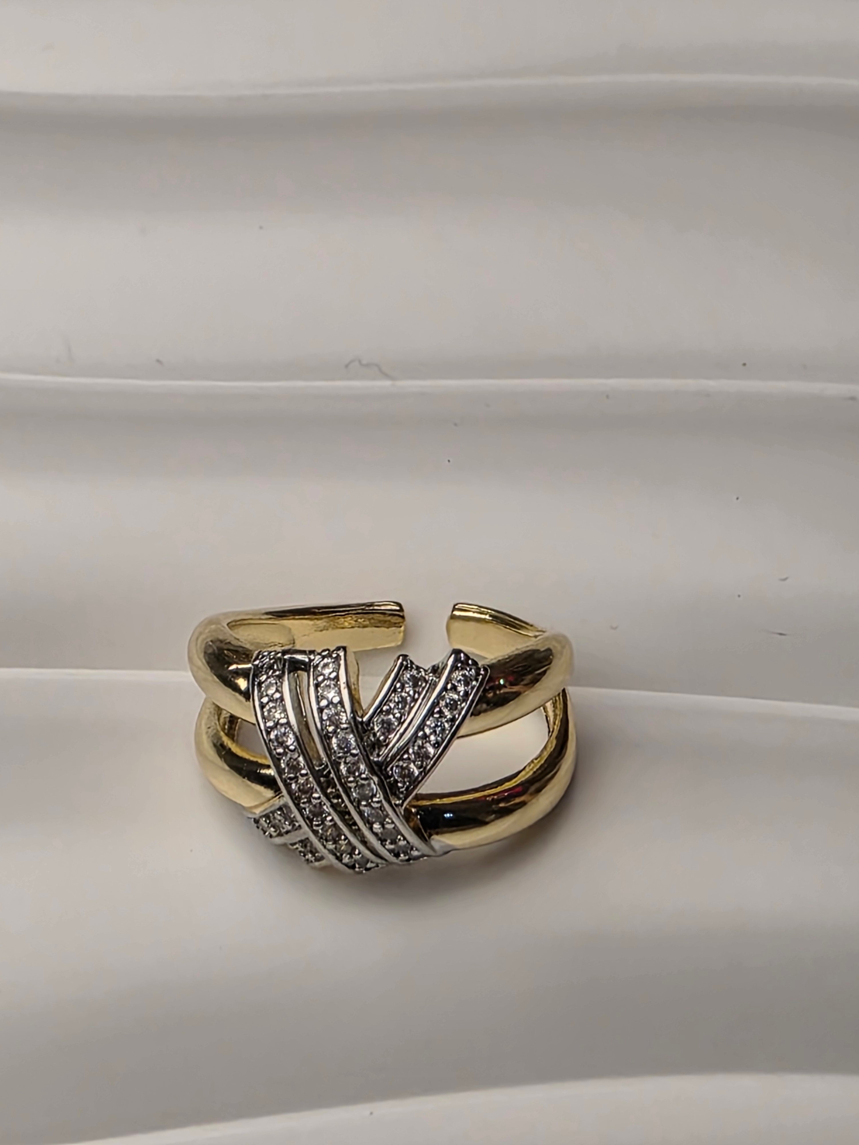 Gold plated zircon 2 tone ring adjustable